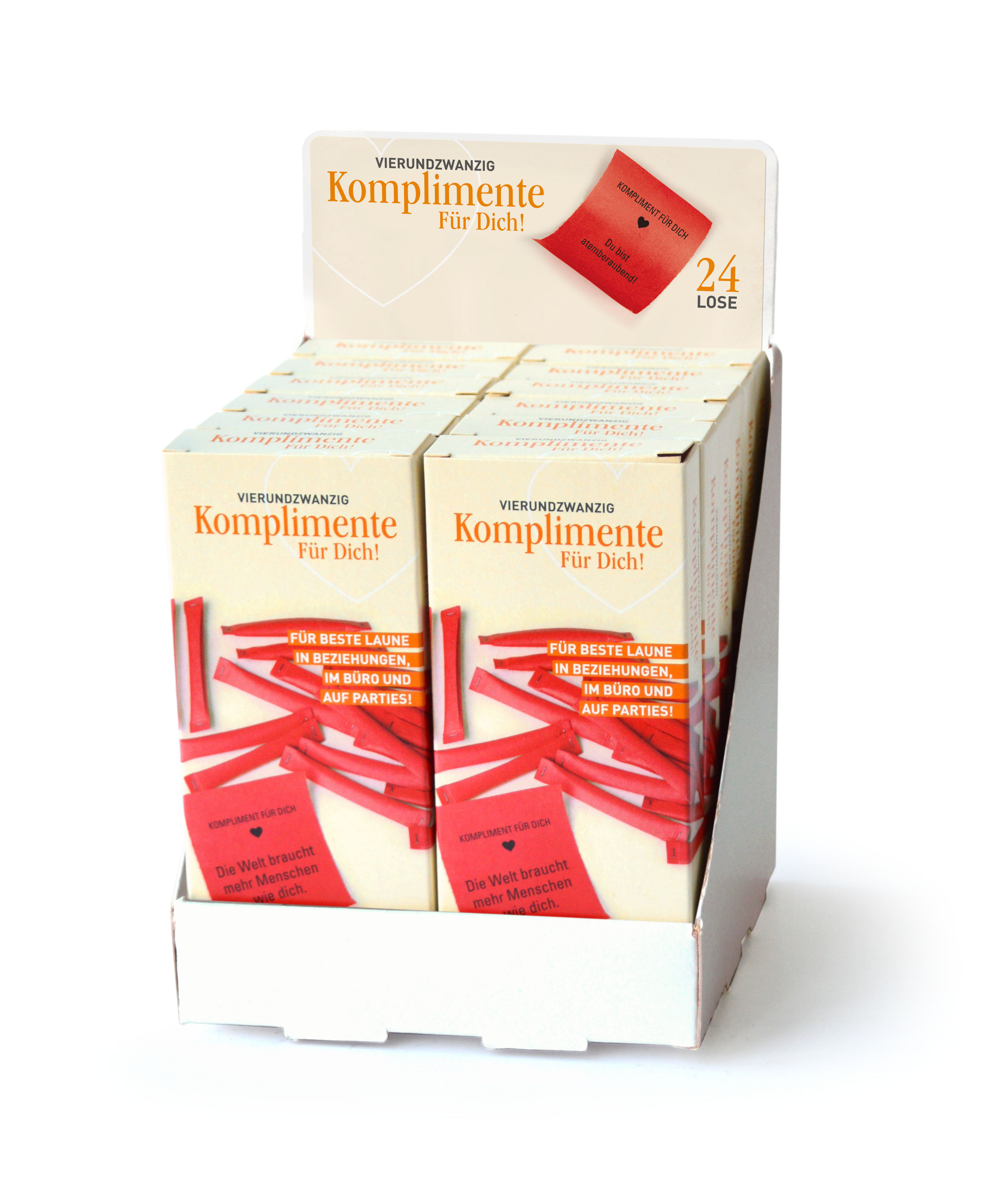 Komplimente (Auswahl): - Du bist der Sonnenschein in kalten Wintertagen. - Du bist noch schöner, wenn du lachst. - Die Welt braucht mehr Menschen wie dich. - Du bist mein Held. - Du bist eine Bereicherung. Wieder und wieder und wieder... - Manchmal wär ich gern ein bisschen mehr wie du. - Einen Menschen wie dich sollte jeder haben. - Ich möchte mit dir alt werden. - Du bist nicht alles, aber ohne dich ist alles nichts. - Mit Dir möchte ich die Welt verändern. - Ich mag dich wenn du tanzt, vor allem aus der Reihe. - Du bist nicht nur außen schön.